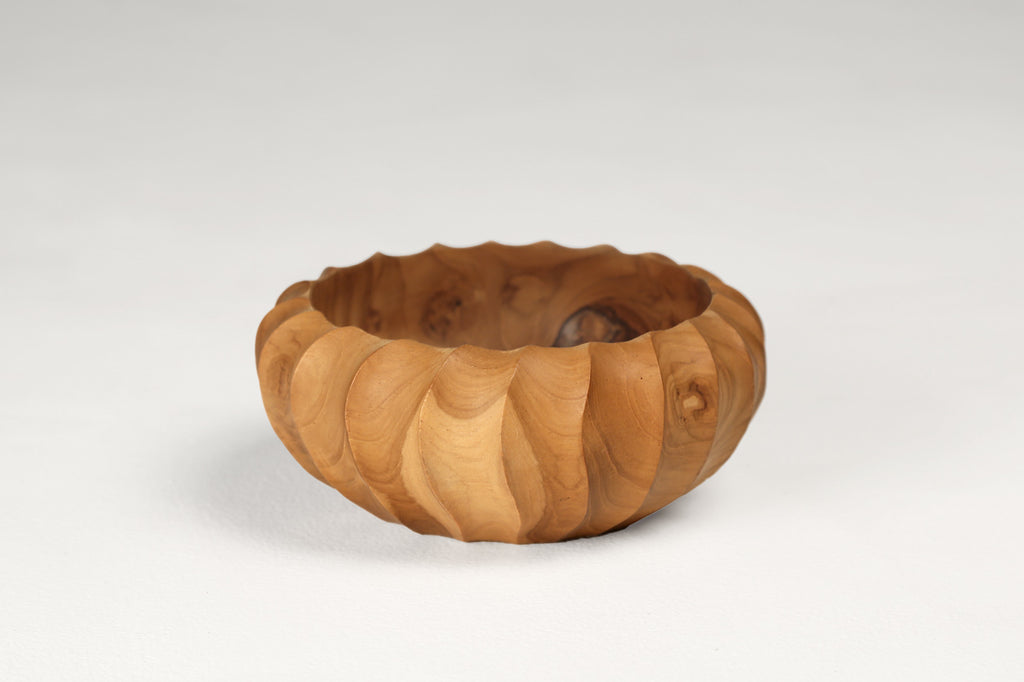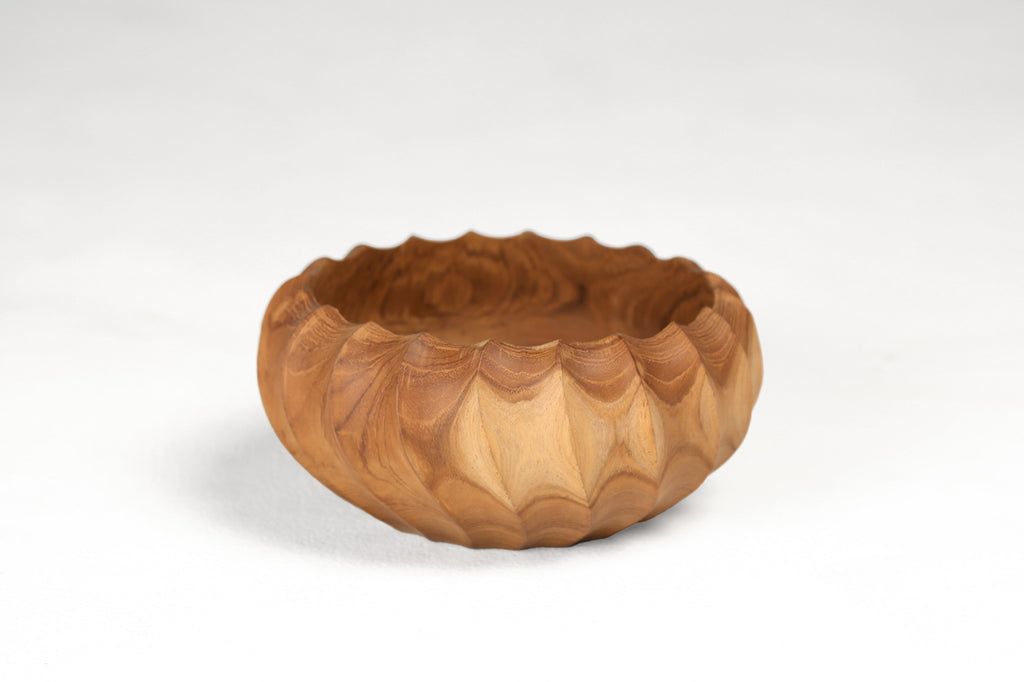 This beautifully hand carved teak bowl has been hand chiseled into a beautiful shape. Approximately 6Dia x 4H