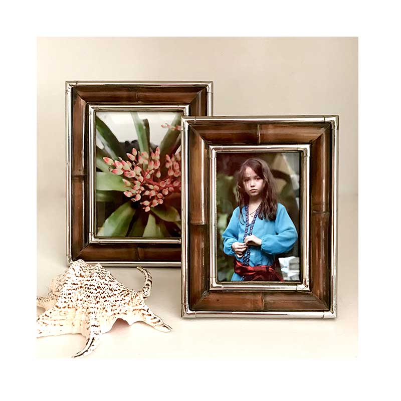 Casual elegance comes together in one frame. Natural bamboo has been aged and antiqued by hand and accented with additional metal edging inside and outside the frame.