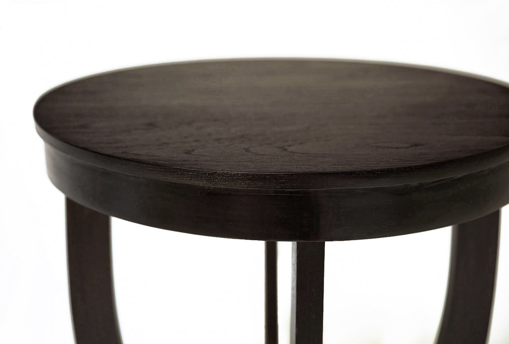 This side table is sleek and stylish in design. Made of natural teak and finished with a hand applied ebony stain