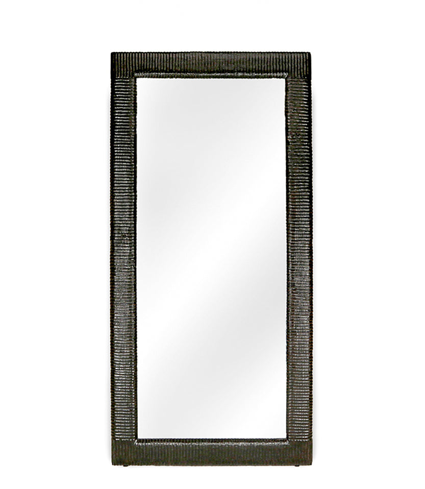 Crafted with care from eco-friendly reclaimed teak wood, this mirror not only reflects your style but also your commitment to sustainability. The hand-chiseled detail adds a touch of rustic charm, making it a captivating focal point that beautifully marries artistry and practicality. Finished in a rich and durable hand polished dark ebony shellac.