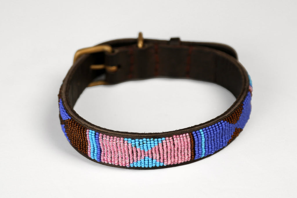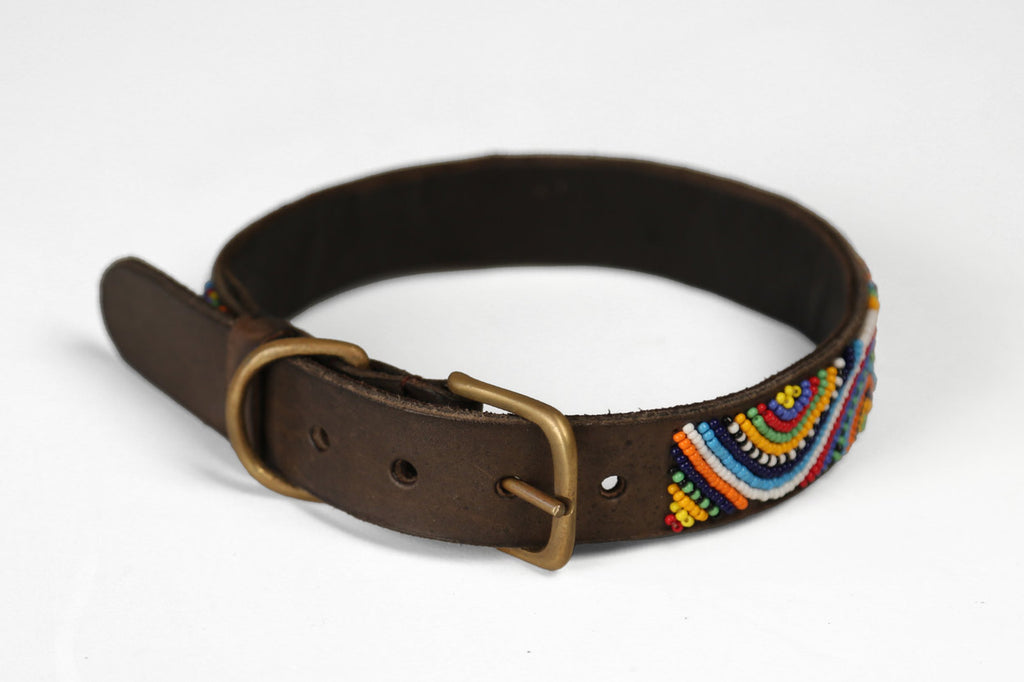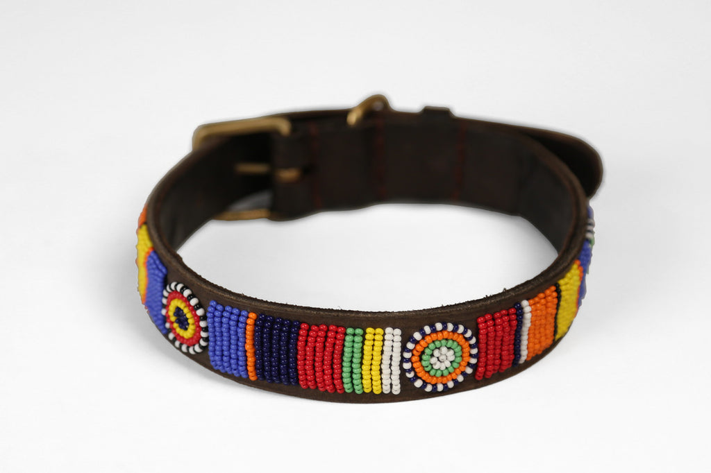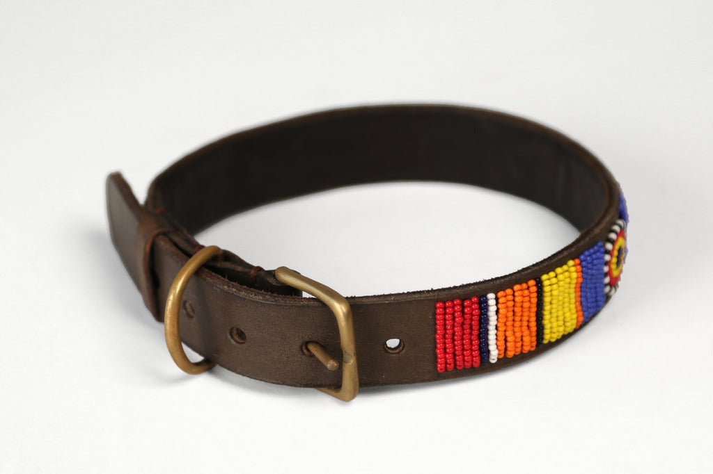 Hand beaded dog collars from the Maasai Warriors in Tanzania.