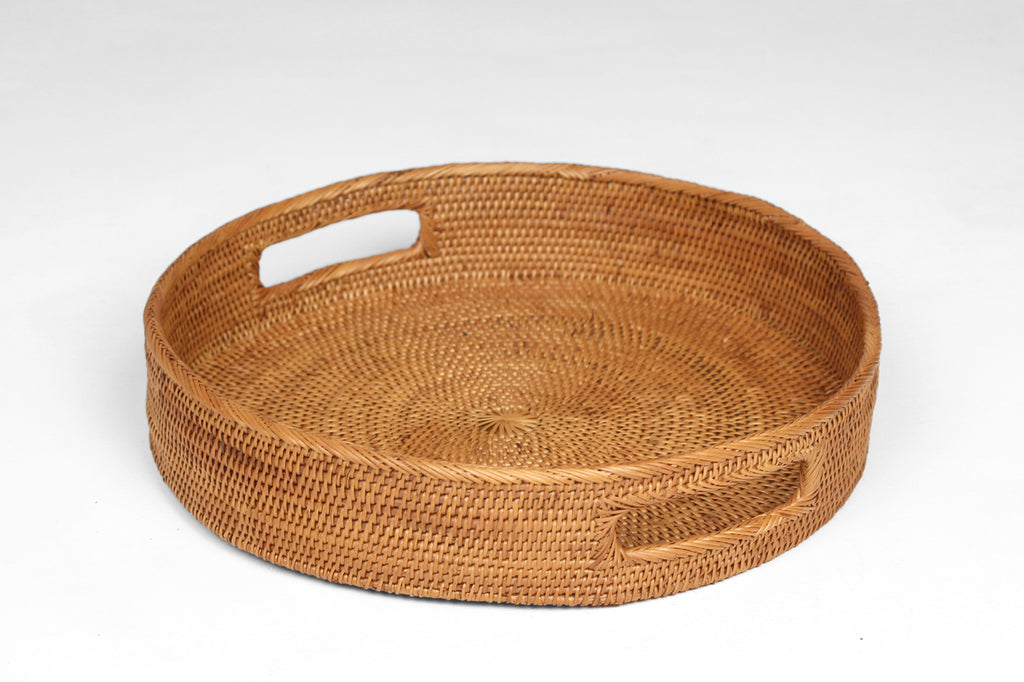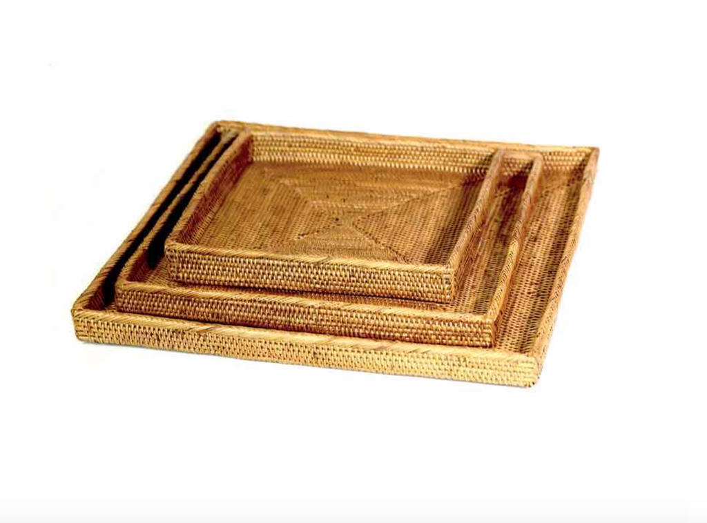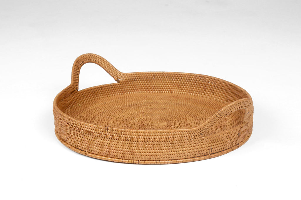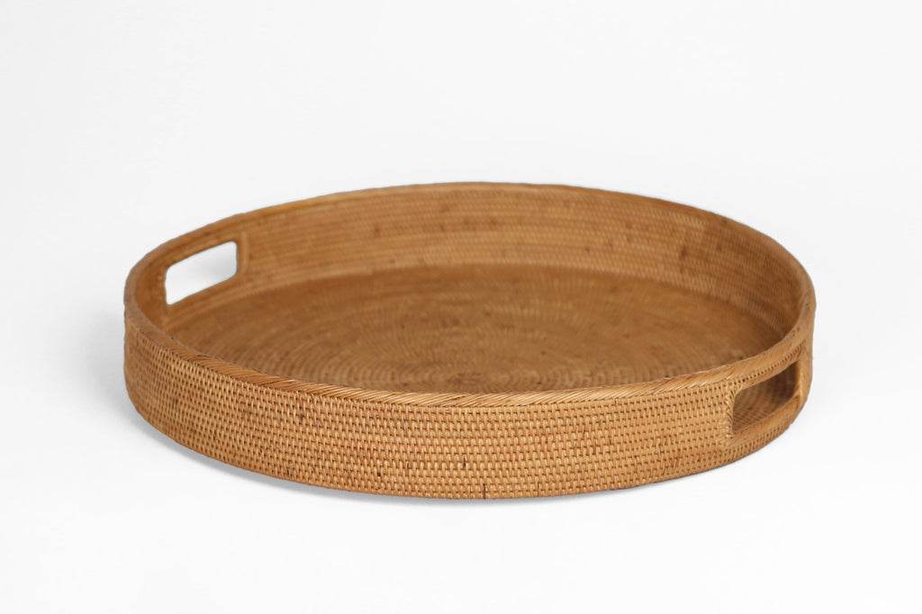 100% hand-woven from Ata grass, it is also called "ketak", a vine which is native to parts of Indonesia. Artisans use a special technique to individually weave Ata grass vines into beautifully structured items for your home and more. These handmade, uniquely tight woven trays are great for organization. They are smoked over coconut husks for distinct caramel coloration. We work with the local village in Bali to produce these amazing woven trays.