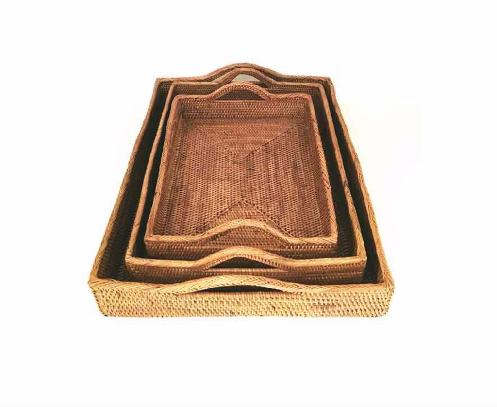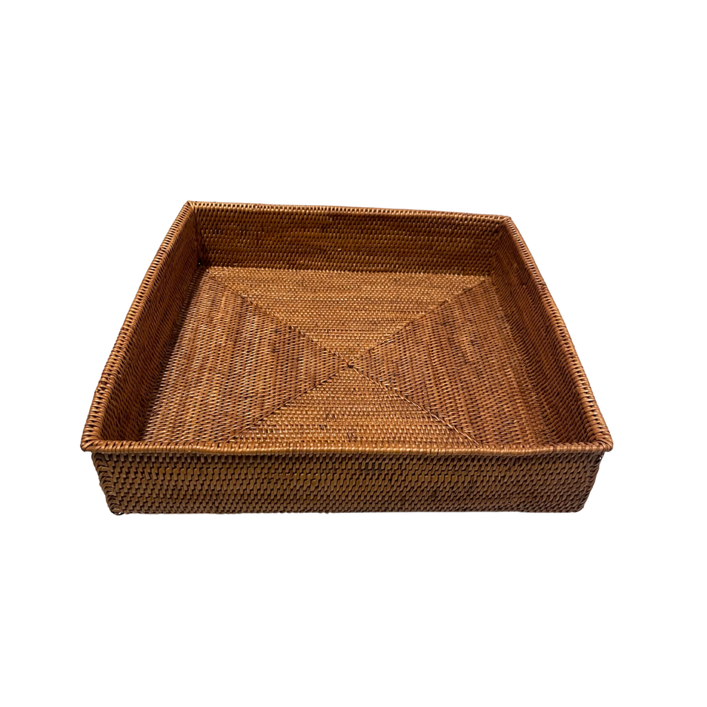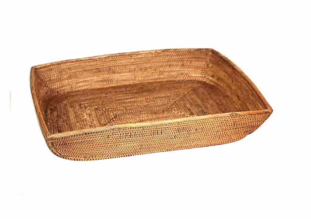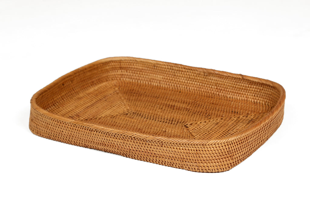 100% hand-woven from Ata grass, it is also called "ketak", a vine which is native to parts of Indonesia. Artisans use a special technique to individually weave Ata grass vines into beautifully structured items for your home and more. These handmade, uniquely tight woven trays are great for organization. They are smoked over coconut husks for distinct caramel coloration. We work with the local village in Bali to produce these amazing woven trays.