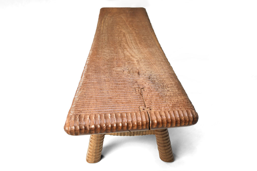 Handcrafted from reclaimed teak wood, this hand chiseled bench's rugged yet refined design adds a touch of rustic charm to your space. It is truly a functional work of art that aligns perfectly with eco-conscious living.