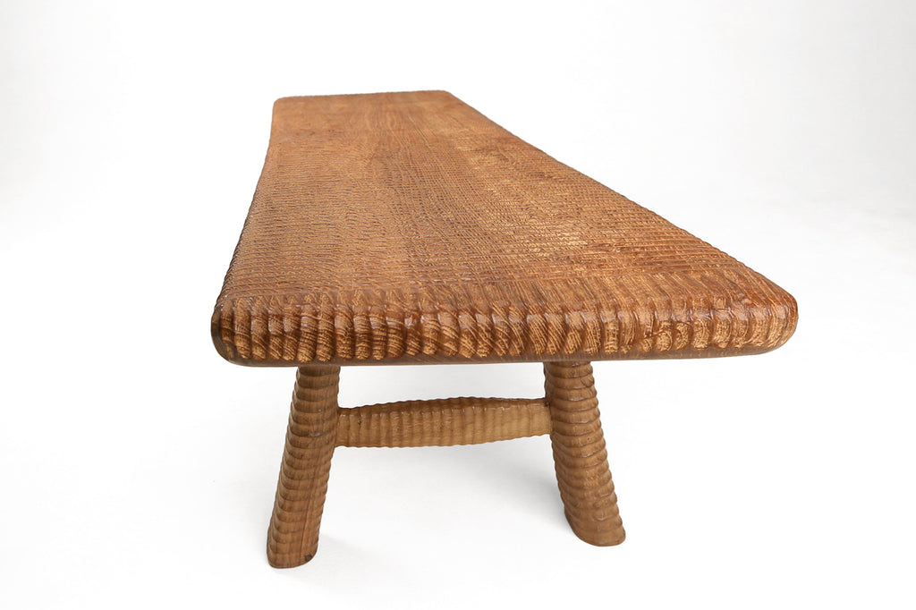 Handcrafted from reclaimed teak wood, this hand chiseled bench's rugged yet refined design adds a touch of rustic charm to your space. It is truly a functional work of art that aligns perfectly with eco-conscious living.