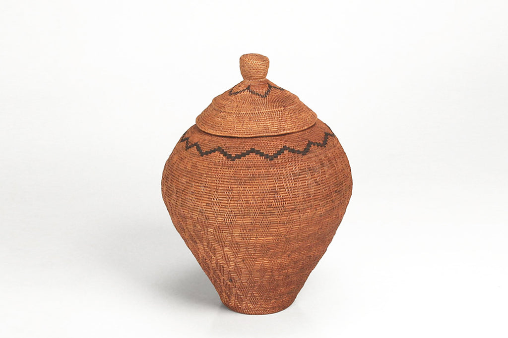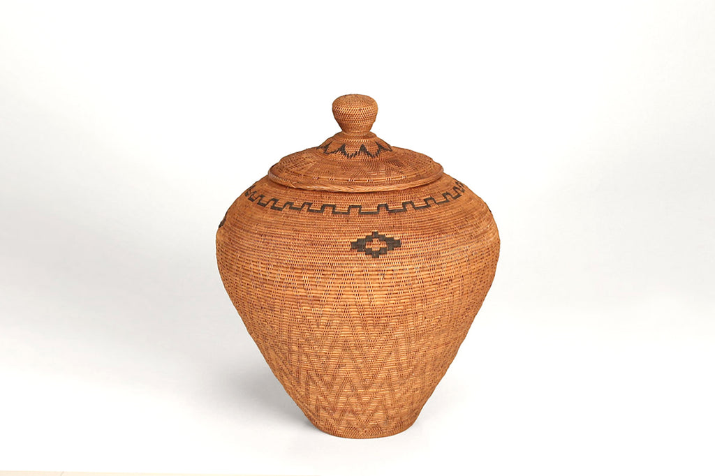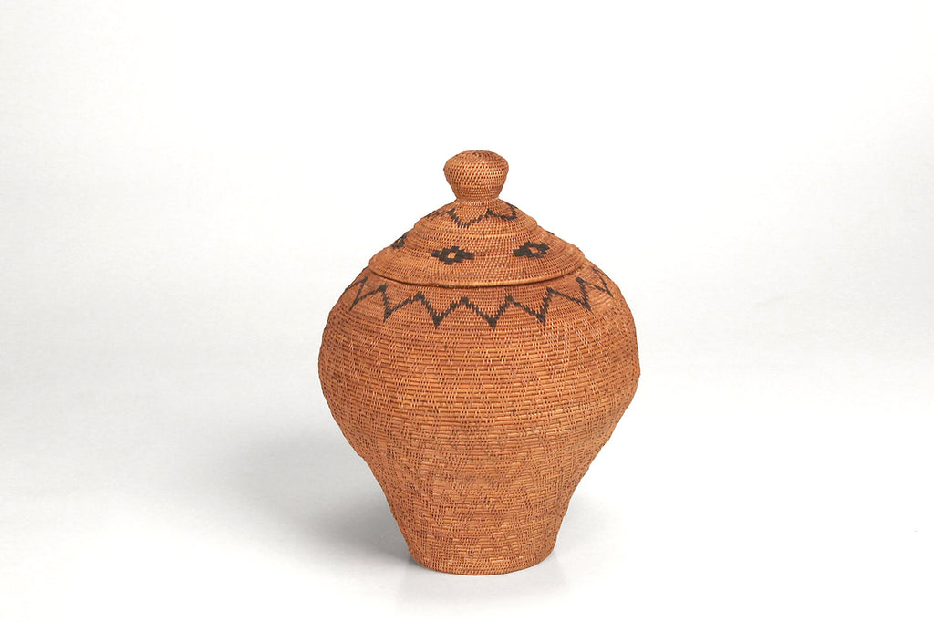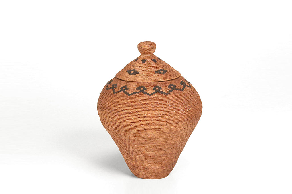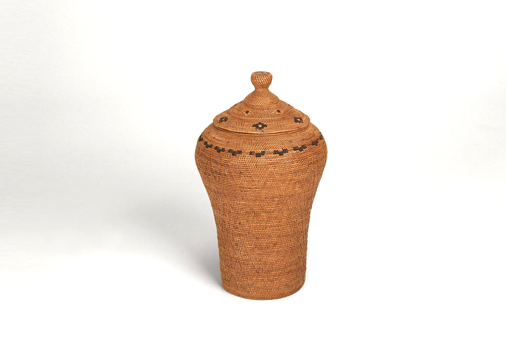 Handmade, uniquely tight weave, perfect as a storage container or hamper, comes with lid. Smoked over coconut husks for distinct caramel coloration. Clean with soft damp or dry cloth.